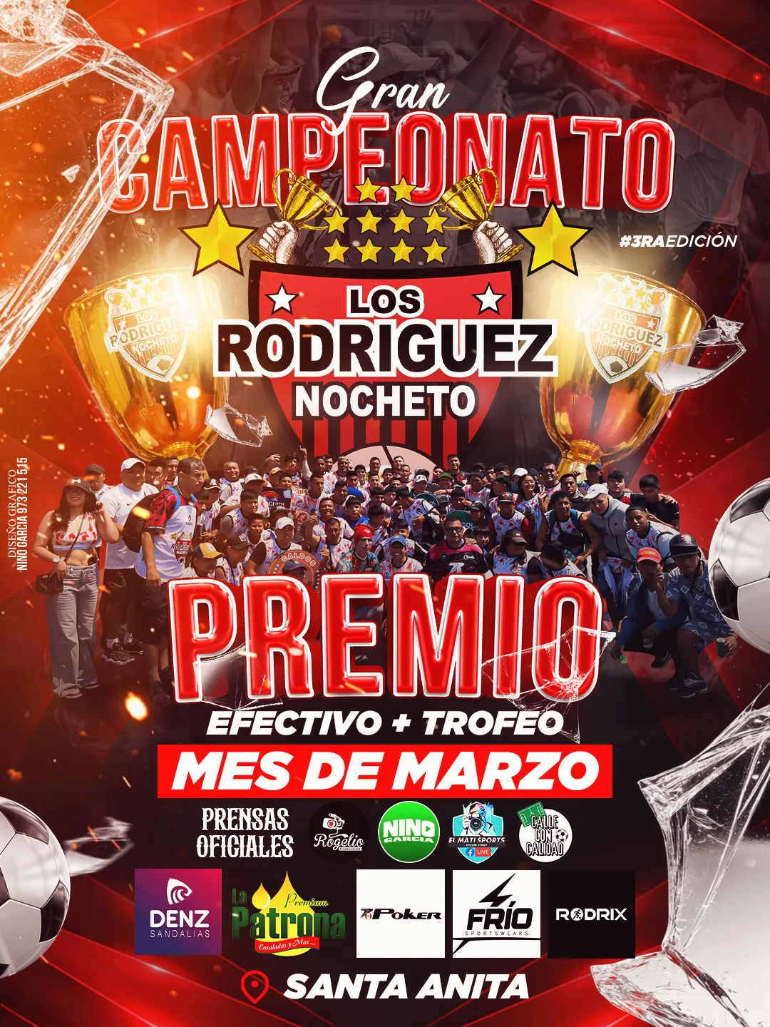 🔥⚽ Se viene la 3ra edición de LOS RODRIGUEZ NOCHETO ⚽🔥 En marzo, Santa Anita vuelve a tener una cita con el fútbol de barrio: Gran Campeonato Los Rodríguez Nocheto 🏆. Un torneo que ya es tradición y que esta vez promete jornada pesada, con equipos que van a dejarlo todo por el objetivo. 💰 Premio en efectivo + trofeo 🏆 📍 Santa Anita 📅 Durante el mes de marzo Si te gusta la competencia brava y el buen ambiente de campeonato, este es uno para marcar en el calendario ✅⚡